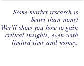 Whatever the research technique or the customer audience, we will design, structure and execute your research so that you get the answers you need within your timing and budget framework. We have extensive training and hands-on experience, and when needed, we partner exclusively with two leading providers of market research services for recruitment and internet surveys to assure a top quality research effort.